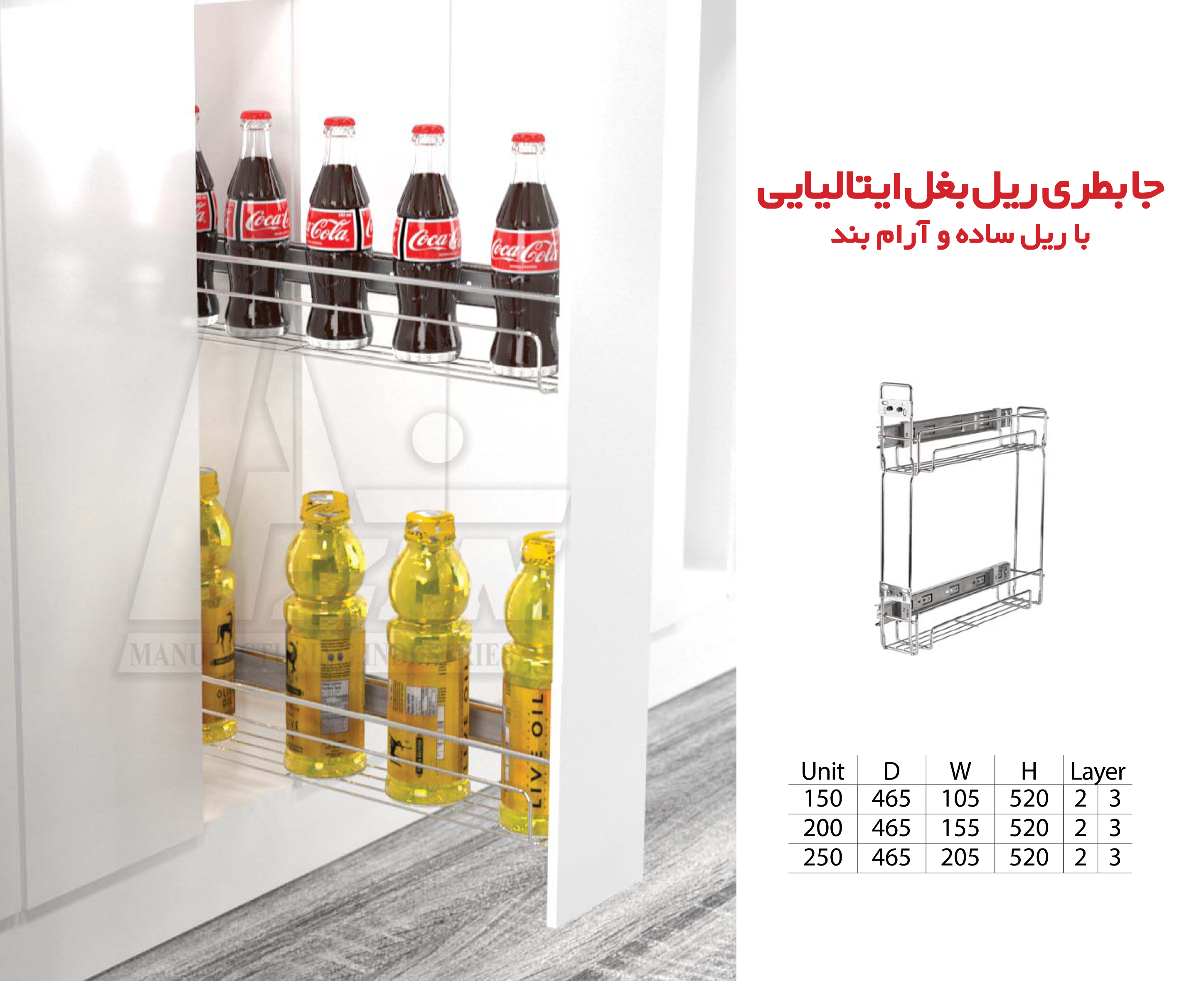 عرض ( سایز یونیت یا عرض تمام شده درب کابینت ): مناسب یونیت 40 سانت
