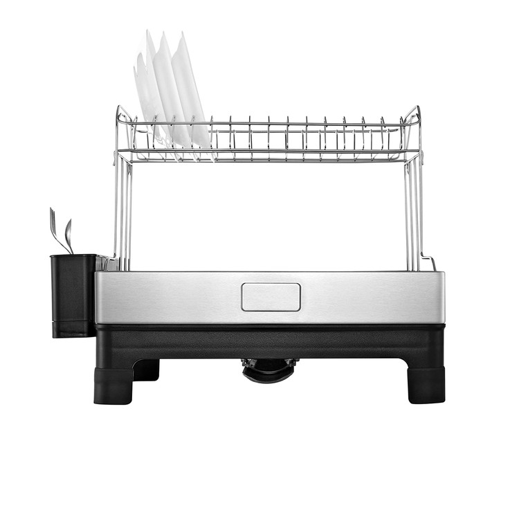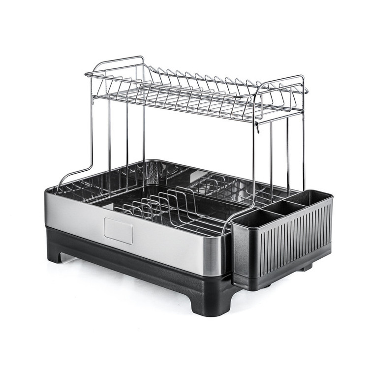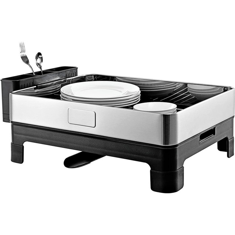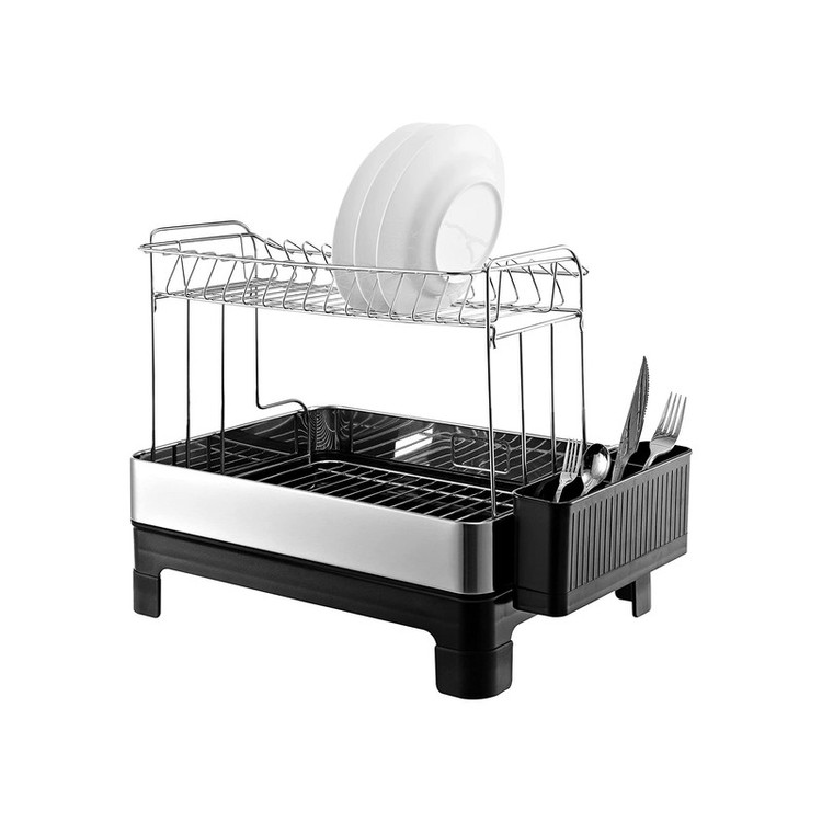 آبچکان دو طبقه ملونی مدل Euro Design کد 9164 یک محصول ترکیبی و 2 طبقه است. منظور از ترکیبی بودن متریال به کار رفته در آن است، جنس بخش رویی یا همان قسمت اصلی این کالا فلزی است که از استیل ضد زنگ ساخته شده است. ولی جنس سینی زیرین این محصول به علاوه جاقاشقی پلاستیکی و به رنگ مشکی است. ابعاد این آبچکان نه آن قدر بزرگ است که روی سینک جا نشود، نه آن قدر کوچک است که پاسخگوی نیاز شما نباشد. ابعاد این آبچکان 52.5x34.5x38.5 سانتیمتر است، فقط هنگام قرار دادن آبچکان کابینت دقت کنید پایه های آن را روی سطح صاف قرار دهید تا ثابت و صاف شود و سست و لغزان نباشد. شما می توانید از بخش بالایی برای قرار دادن لیوان ها استفاده کنید و بخش زیرین که پارتیشن بندی دارد فضای مناسبی برای قرار دادن انواع بشقاب ها است.