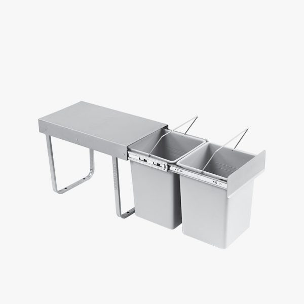 سطل زباله ریلی توکار مجهز به دو مخزن پلاستیکی و چهارچوب فلزی و درب فلزی