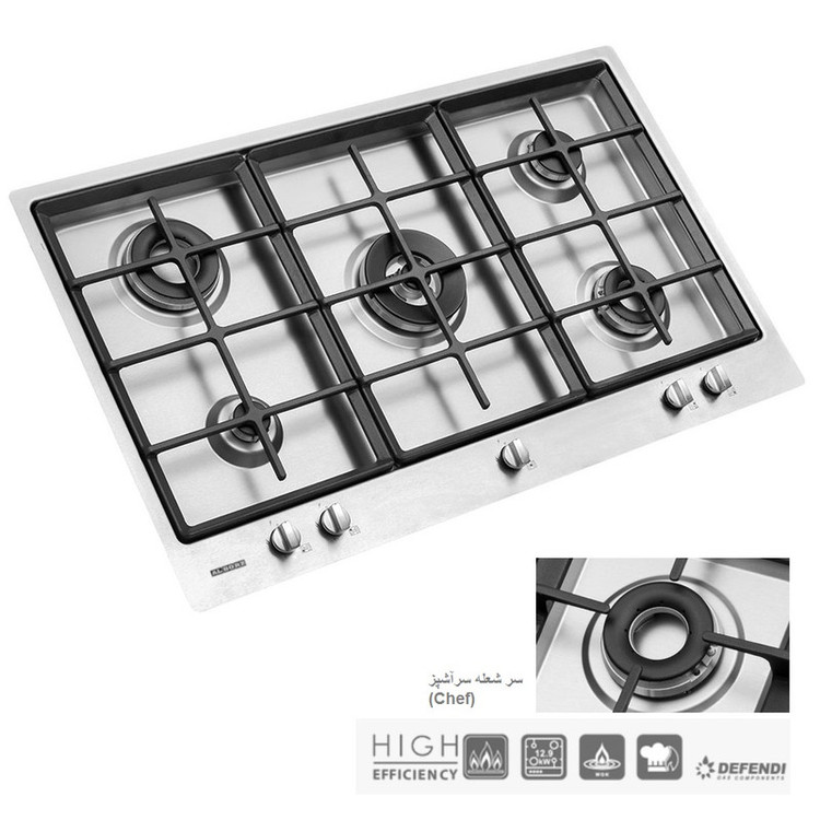 گاز استیل البرز مدل S-5911 از سری شف استیل البرز است که دارای کیفیت بسیار بالا در ساخت ، طراحی و قطعات ( ساخت ایتالیا ) است، ابعاد گاز استیل 5911 استیل البرز 88 سانتیمتر در 54 سانتیمتر است و به علت عرض زیاد این گاز حتما ابعاد رو با کابینت کار خود چک نمایید. قطعات گازسوز این اجاق گاز ساخت کشور ایتالیا و با برند DEFENDI است. گاز S5911 استیل البرز دارای پنج شعله که مجموع بار نیروی آنها 12/9kW است. دارای دو سرشعله CHEF و یک شعله پلوپز WOK است.