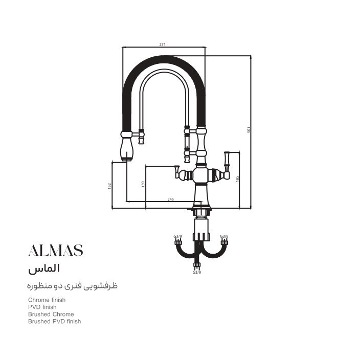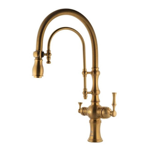 در شیر ظرفشویی دو منظوره درخشان مدل الماس گلدمات همانطور که از نام محصول پیداست، این شیر دو کاره است و در کنار خروجی آب معمولی، شامل یک خروجی تصفیه آب نیز میشود. با وجود شلنگ، خروجی و اهرم جدا برای آب تصفیه شده، دیگر نیازی به خرید شیر جداگانهای ندارید و با یک انتخاب بهینه میتوانید همزمان از هر دو آب معمولی و تصفیهشده استفاده کنید. شیر سینک الماس گلدمات به صورت فنری طراحی شده است. در شیر فنری این امکان را دارید که شلنگ را از جای خود خارج کنید و به هر سمتی که خواستید بکشید. در واقع با این شیر فنری شما به تمام نقاط سینک دسترسی خواهید داشت. محصول طراحی ظاهری بسیار جذابی دارد. چون در عین استفاده از تکنولوژی و فرم مدرن، اهرمها کلاسیک هستند. این ترکیب باعث شده شیر سینک الماس ظاهری متمایز و آنتیک داشته باشد. رنگ شیر، طلایی با آبکاری مات است.