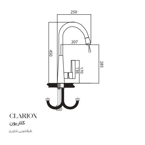 شیر شاوری کلاریون گلد درخشان به صورت شاوری یا شلنگدار طراحی شده است. در مدل شاوری، شیر به سادگی از جای خود بیرون میآید و به کمک شلنگ بلند، میتوانید آن را به هر جهتی که میخواهید بکشید. سپس با رها کردن، شلنگ مجدد به دهانه برمیگردد. با این طراحی شما به تمام نقاط سینک دسترسی خواهید داشت.