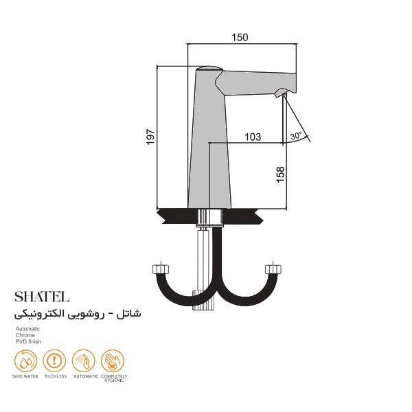 سایر توضیحات: سنسور الکترونیکی هوشمند – مدت زمان جریان آب : 0.5 تا 4 ثانیه – حداکثر دمای آب : تا 80 درجه سانتیگراد – دامنه سنسور : 18 تا 22 سانتیمتر – آب دهی 12 لیتر در دقیقه