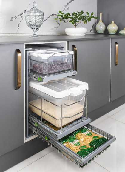 - در طبقه اول 3 باکس پلاستیکی درب دار وجود دارد که می توانید برای نگهداری حبوبات، خشکبار یا هر چیز دیگری از آن استفاده کنید.