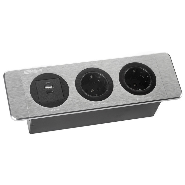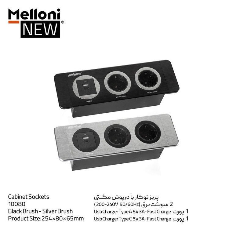 پریز توکار ملونی مدل 10080/ دارای دو سوکت برق (V 200-240) / یک پورت Usb/ یک پورت Usb Type C پریز توکار کابینت یا پریز مخفی کابینت یکی از بروز ترین تجهیزات دکوراسیون داخلی به شمار می رود. در دکوراسیون های مدرن امروزی بسیاری از افراد، پریز توکار کابینت به جای پریز های عادی استفاده می کنند