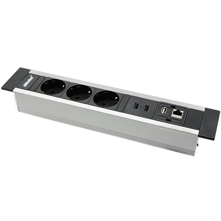 پریز توکار اینزرت ملونی مدل 10030 - مجهز به سه سوکت برق ، دو پورت شارژر usb ، یک پورت usb data ، یک پورت شبکه Cat-6 می باشد و دارای قابلیت نصب دیواری است.
