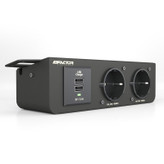 چند راهی برق Factor مدل +UPO2 یک چندراهی با بدنه فلزی و بسیار باکیفیت و مقاوم است که جهت مصارف مختلفی خصوصا کابینت و دکوراسیون داخلی طراحی شده است امکان پیچ شدن +UPO2 به سطوح مختلف از قبیل کابینت . سرویس خواب . میزهای اداری و .... این امکان را به شما میدهد که از آن در مکان های مختلفی مثل آشپزخانه . میزکار ، میز آرایش و ... استفاده نمایید و نگران جابجا شدن آن حین استفاده نباشید این محصول دارای 2 پورت شارژ USB با خروجی 2.1 آمپر میباشد که جهت شارژ انواع موبایل تبلت و .... قابل استفاده میباشد بدنه این چند راهی از جنس فلزی با روکش رنگ کوره ای مقاوم میباشد در قسمت بالای این چندراهی نورهای LED استفاده شده که علاوه بر زیبایی چشم نواز آن ، سبب سهولت در استفاده آن در مکان های تاریک یا زمان هایی مثل شب که نور کافی برای پیدا کردن پریز ها وجود ندارد شده است نور استفاده شده در قسمت بالای +UPO2 به وسیله یک دکمه در کنار دستگاه ، بدون تاثیر در عملکرد خاموش یا روشن بودن چندراهی ، قابل کنترل میباشد پریز های استفاده شده در این چندراهی زیبا و کاربردی ، امکان جریان دهی تا 16 آمپر را به شما میدهد که میتوانید با خیالی راحت از دستگاه هایی با توان بالا از قبیل بخاری برقی یا دستگاه های پرمصرف دیگر استفاده نمایید