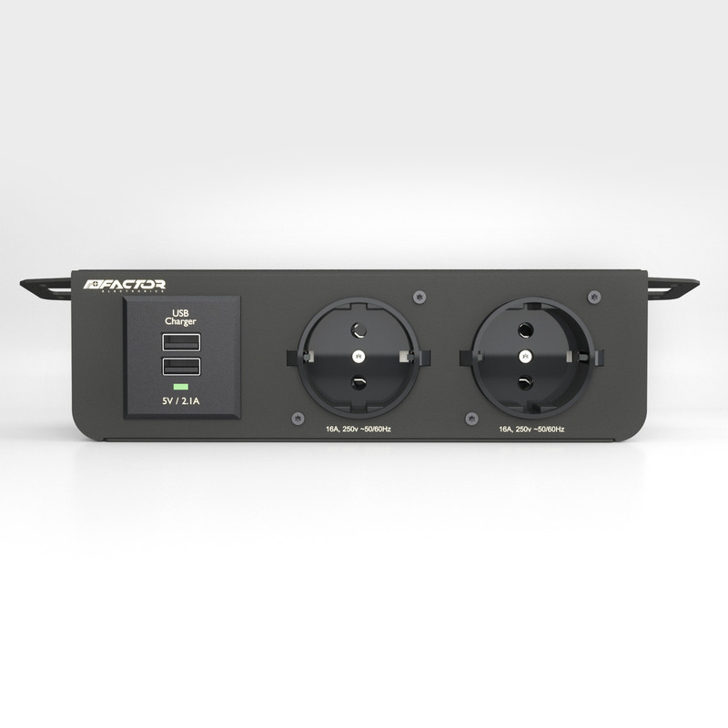 چند راهی برق Factor مدل +UPO2 یک چندراهی با بدنه فلزی و بسیار باکیفیت و مقاوم است که جهت مصارف مختلفی خصوصا کابینت و دکوراسیون داخلی طراحی شده است امکان پیچ شدن +UPO2 به سطوح مختلف از قبیل کابینت . سرویس خواب . میزهای اداری و .... این امکان را به شما میدهد که از آن در مکان های مختلفی مثل آشپزخانه . میزکار ، میز آرایش و ... استفاده نمایید و نگران جابجا شدن آن حین استفاده نباشید این محصول دارای 2 پورت شارژ USB با خروجی 2.1 آمپر میباشد که جهت شارژ انواع موبایل تبلت و .... قابل استفاده میباشد بدنه این چند راهی از جنس فلزی با روکش رنگ کوره ای مقاوم میباشد در قسمت بالای این چندراهی نورهای LED استفاده شده که علاوه بر زیبایی چشم نواز آن ، سبب سهولت در استفاده آن در مکان های تاریک یا زمان هایی مثل شب که نور کافی برای پیدا کردن پریز ها وجود ندارد شده است نور استفاده شده در قسمت بالای +UPO2 به وسیله یک دکمه در کنار دستگاه ، بدون تاثیر در عملکرد خاموش یا روشن بودن چندراهی ، قابل کنترل میباشد پریز های استفاده شده در این چندراهی زیبا و کاربردی ، امکان جریان دهی تا 16 آمپر را به شما میدهد که میتوانید با خیالی راحت از دستگاه هایی با توان بالا از قبیل بخاری برقی یا دستگاه های پرمصرف دیگر استفاده نمایید