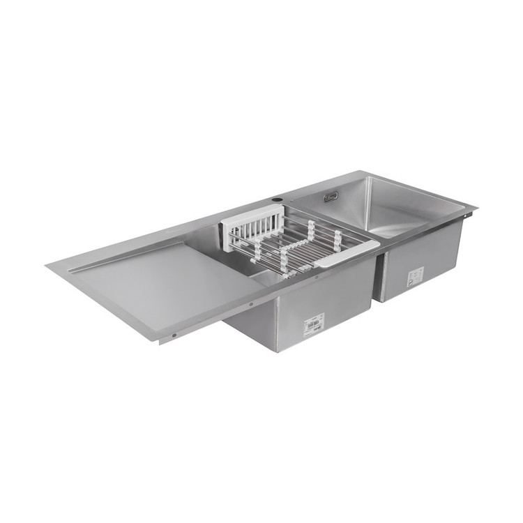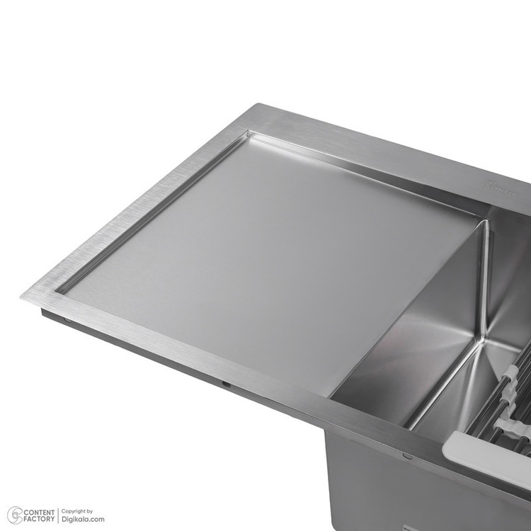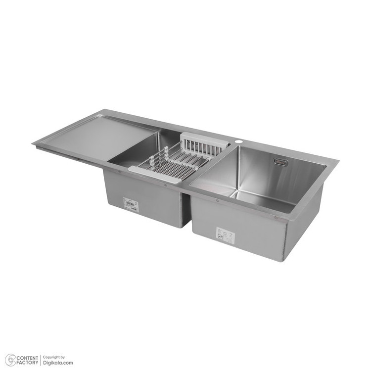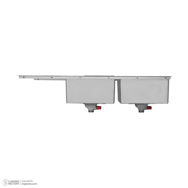 ابعاد: 120×50×22 / ضخامت ورق: 1 میلیمتر / ظرفیت لگنها: هر لگن 33 لیتر / محل نصب شیر آب: روی سینی / نوع سیفون : دو کف شور، دو سر ریز