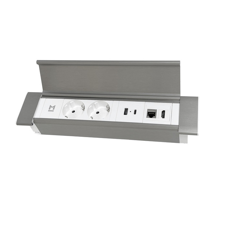 پریز توکار مستطیلی کد 10098 ملونی . این پریز دارای شارژر USB Type A+C حداکثر با قابلیت 30W مناسب برای شارژ انواع گوشی می باشد. روکش استیل بدنه این محصول نمای شکیل و بسیار زیبایی به این محصول داده است. همچنین این پریز دارای یک درب می باشد که مانع ورود گرد و غبار می گردد. این پریز دارای 2 سوکت پریز برق. 1 پورت HDMI می باشد. 1پورت شبکه Cat-6. 2 پورت شارژر USB. سیم کشی داخلی.
