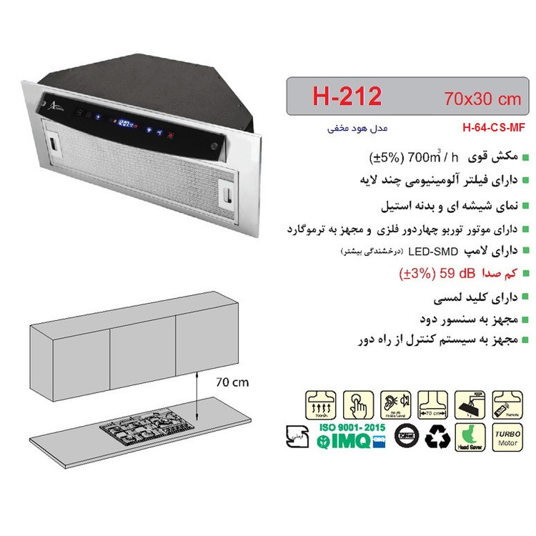 هود مخفی مدل H-212 اخوان مدل جدیدتر هود H-64-CS-MF با حلزونی فلزی است و یکی از پرطرفدارترین هودهای مخفی اخوان است. هود H212 اخوان ابعاد استاندارد 70 در 30 سانتیمتری دارد و یکی از دو مدل هودهای اخوان با موتور فلزی است (تا سال 1402) .