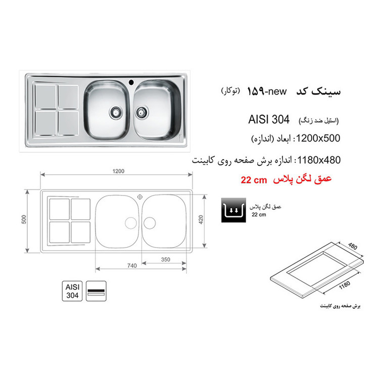 ابعاد سینک