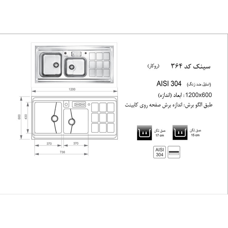 ابعاد سینک