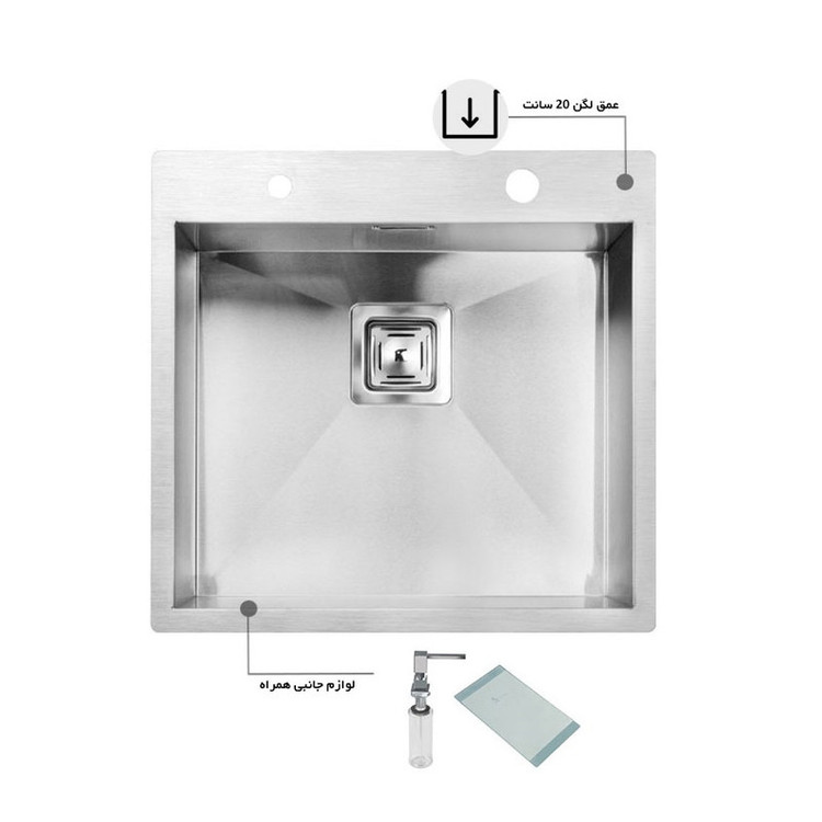 ابعاد خارجی محل نصب : 50 در 52.5 سانتی متر نوع زیراب استفاده شده : مربع با تخلیه سریع ضخامت ورق : استیل با ضخامت بالا، یک میلیمتری