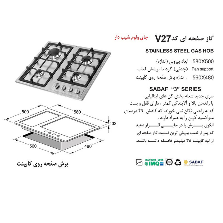 گاز اخوان مدل V27 از سری گازهای استیل با منبع انرزی گازی می باشد. گاز اخوان مدل V27 دارای 4 شعله ، می باشد و در ساخت آن از قطعات ایتالیایی استفاده شده است و از سری جدید شعله پخش کن های ایتالیایی ساباف SABAF در تولید این گاز استفاده شده است که دارای قفل و بست بوده و به راحتی تکان نمیخورند که تا 49 درصد منو اکسید کربن را کاهش میدهند. گاز اخوان مدل V27 از سری گاز های ونوس سرشعله هایی زیبا با راندمان احتراق 25 درصد بالاتر از حد استاندارد را دارد که باعت جوش آمدن سریعتر آب بطور قابل ملاحظه می شود و همچنین با کاهش زمان پخت باعث کاهش مصرف گاز و آلایندگی کمتر خواهد شد همچنین شعله های آبی، تنوع در مدل، شبکه بندی مناسب چدنی ها و سهولت در نظافت ویژگی این محصول است.